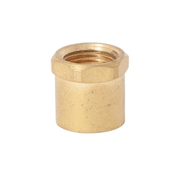 Unfinished brass hex coupling. Coupling measures 1/2 inch height, 1/2 inch diameter and 1/8F