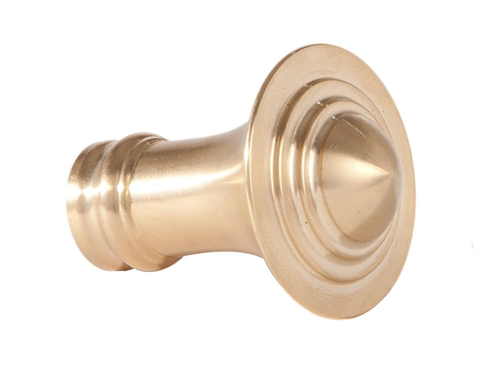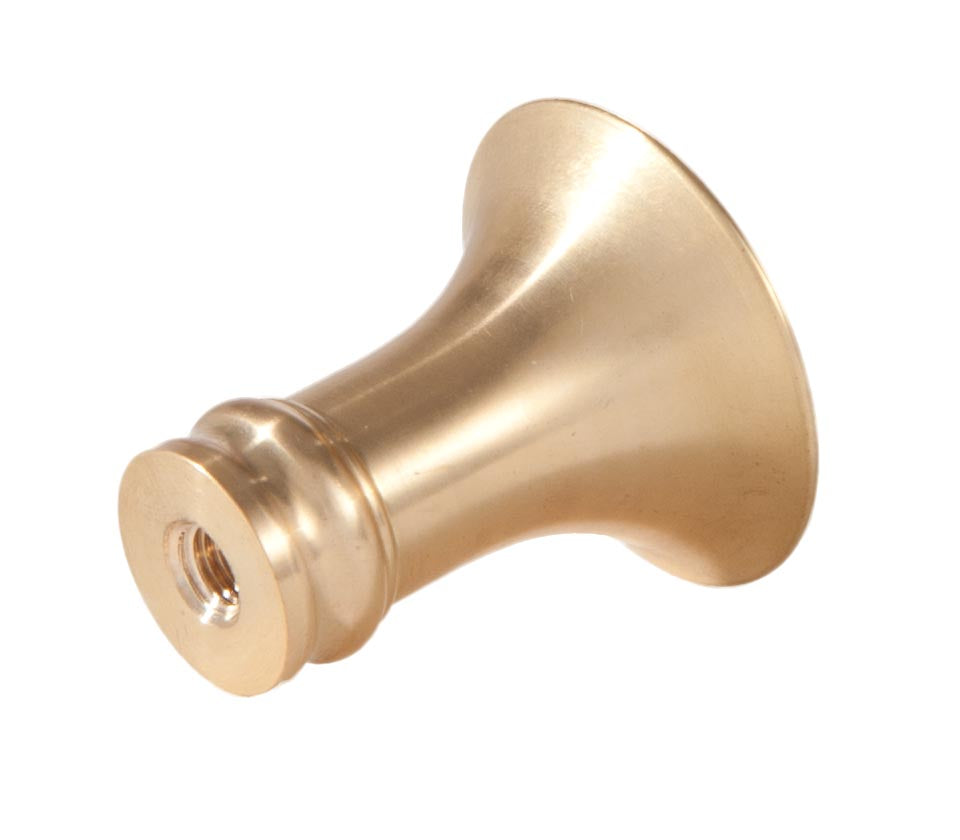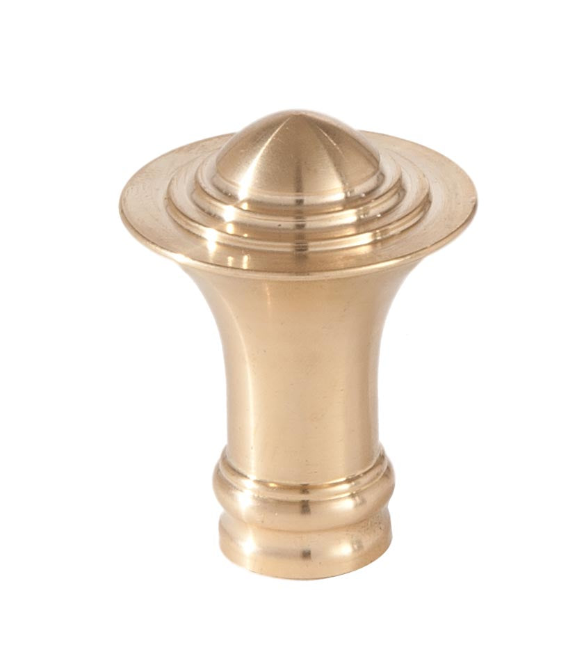 1-7/8" height, Atomic modern design finial, Tap 1/4-27, 1-3/8" diameter, turned brass finial is a good size for Mid-Century Modern table and floor lamps. Unfinished brass, tap 1/4-27 thread.