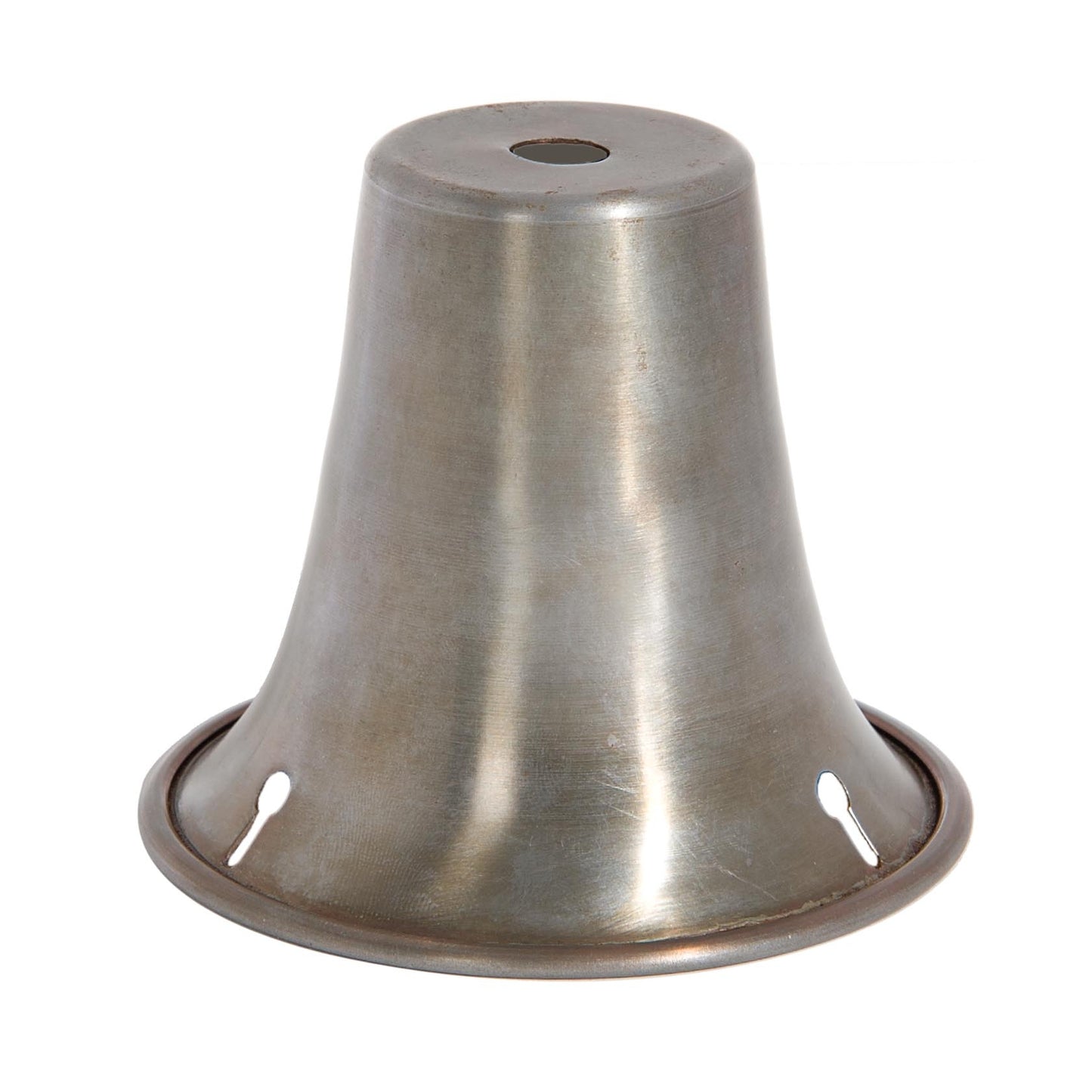 Lamp holder measures 3-1/2 inch outer diameter, 3 inch tall, top diameter 1-1/2 inch. Shade has a rolled bottom edge, 7/16 inch diameter center hole slips 1/8 IP pipe.