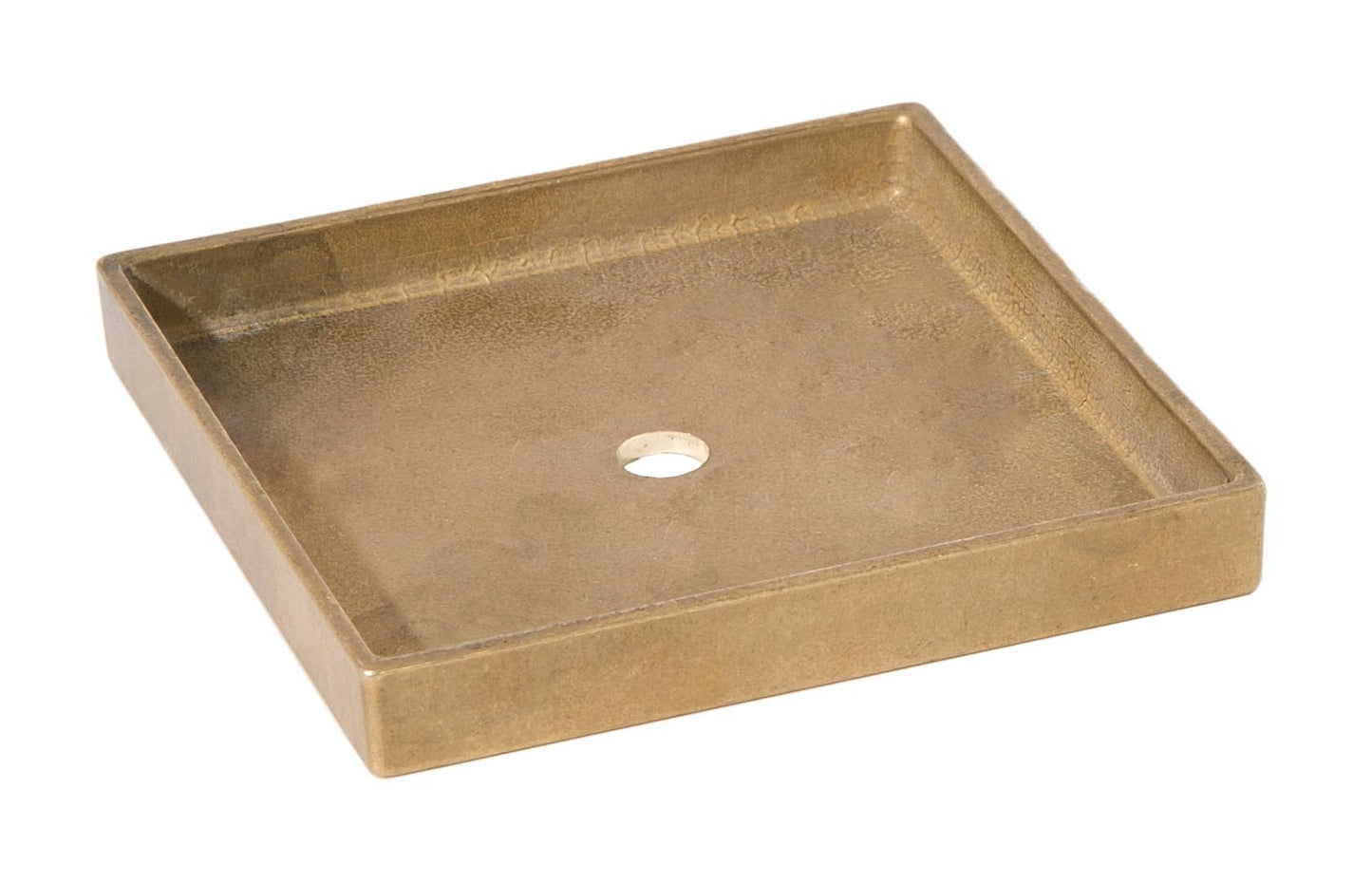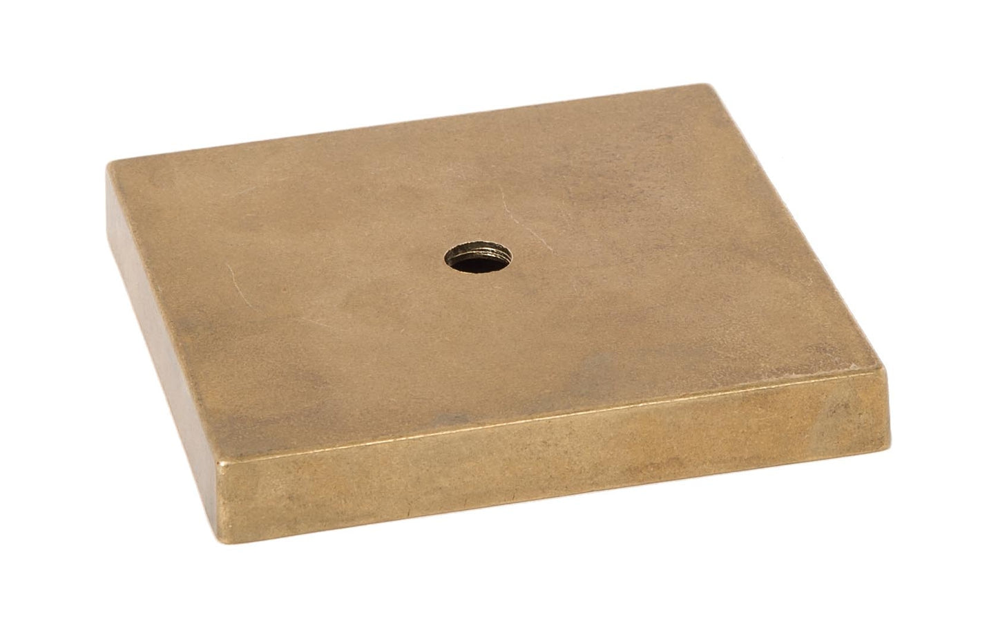 Unfinished die cast brass backplate or canopy. Measures 3-15/16 inch square x 1/2 inch deep, has a 7/16 inch center hole that slips 1/8IP. Fits handy box.