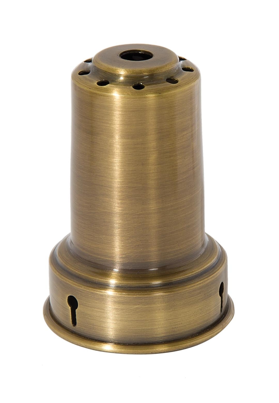 Covers standard sockets and has heat holes in the top of the holder. Holder measures 3-3/8 inch height, 2-1/2 inch inner diameter and the center hole slips 1/8IP.