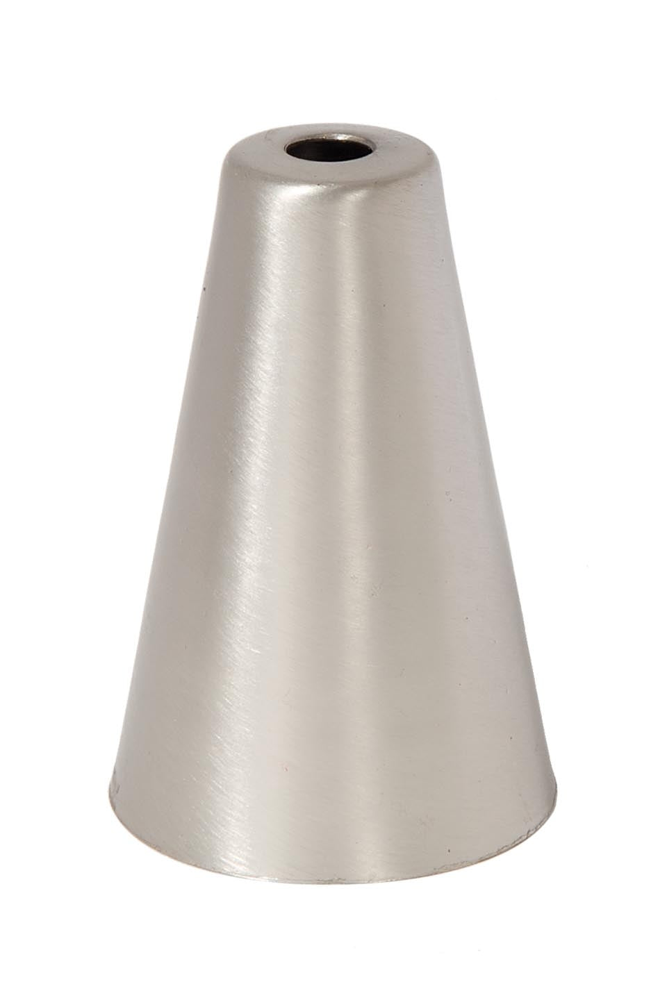 Satin nickel finish brass cone shaped socket cup. Socket cup fits both E12 candelabra and E26 medium lamp sockets.