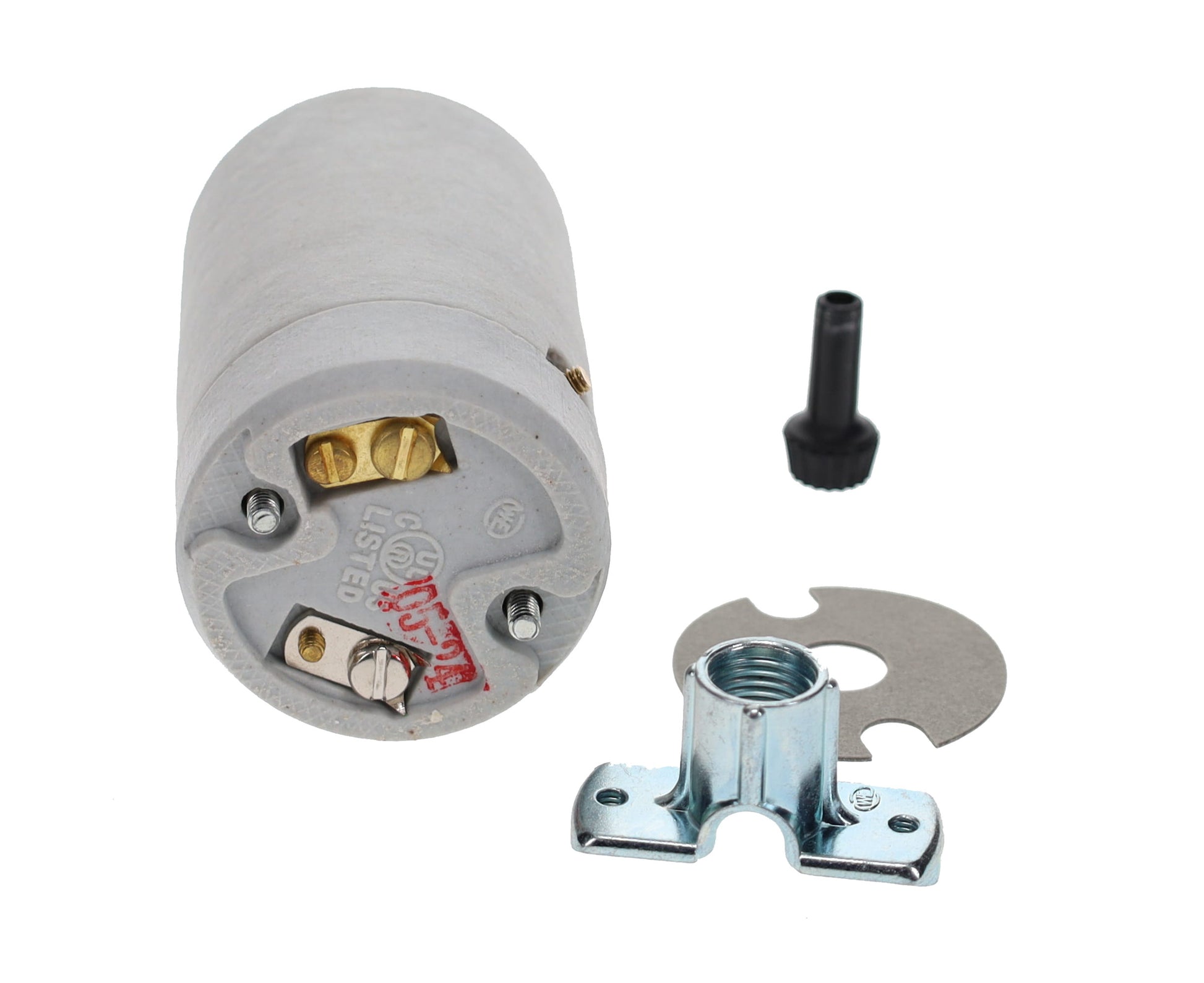 Heavy duty 3-Way Mogul size porcelain lamp socket for 3-Way bulbs. Commonly used on many reflector type floor lamps, this socket has a removable turn knob and comes with a 1/4F base. 250V 750W U.L. listed, Imported.
