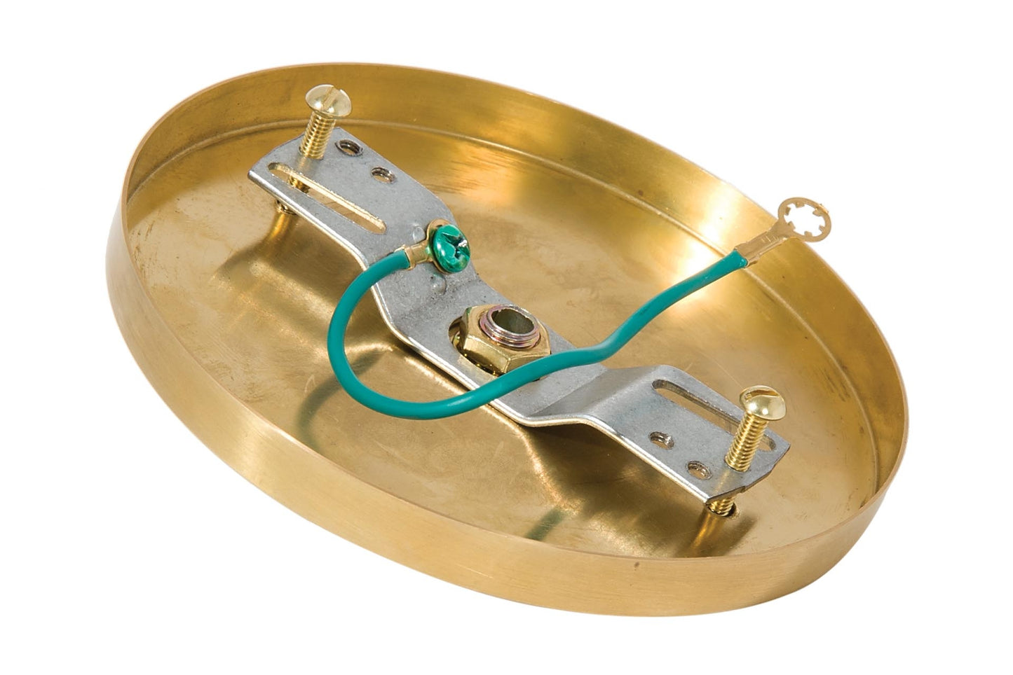 Unfinished brass canopy comes with mounting hardware kit. Comes unassembled.