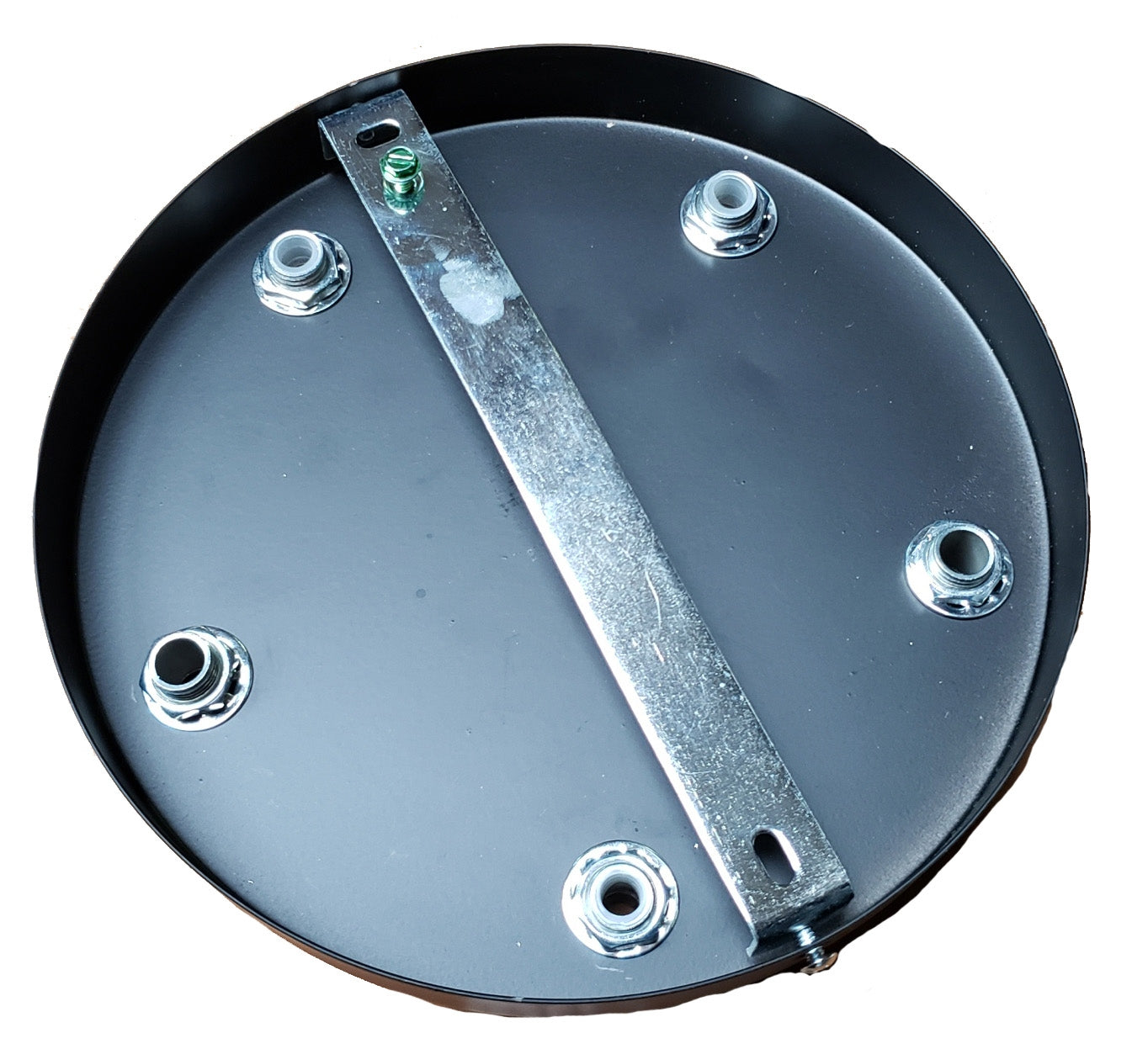 - Measures 8" diameter, heights are 1-7/8" including the cord grip bushings