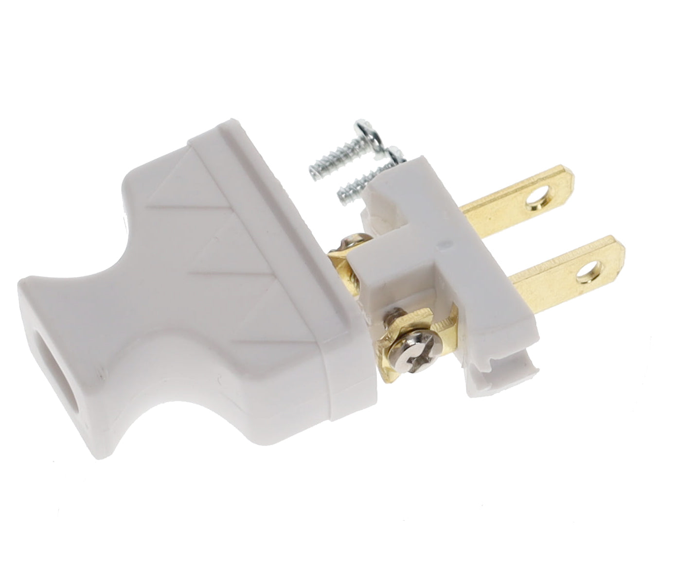 Plug will accommodate rayon covered lamp cord as well as SPT-1 & SPT-2 parallel cord, UL & CSA listed. Will fit cord up to 0.23" thick and 0.465" wide.