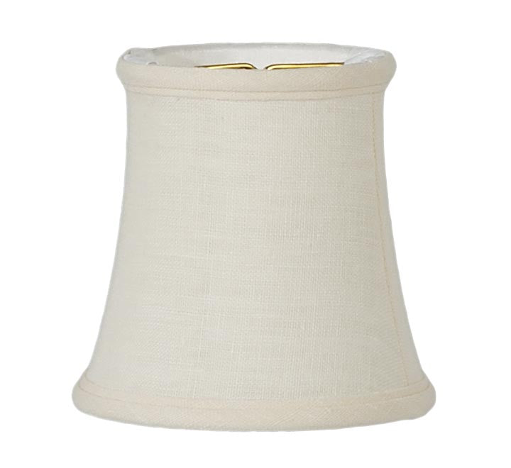This softback chandelier shade is made of eggshell color 100% Fine Linen material, has self-double fold trim top & bottom, and is lined with satin material. Shade comes with brass finish torpedo bulb-clip fitter that is wrapped in satin ribbon where it attaches to the rim.