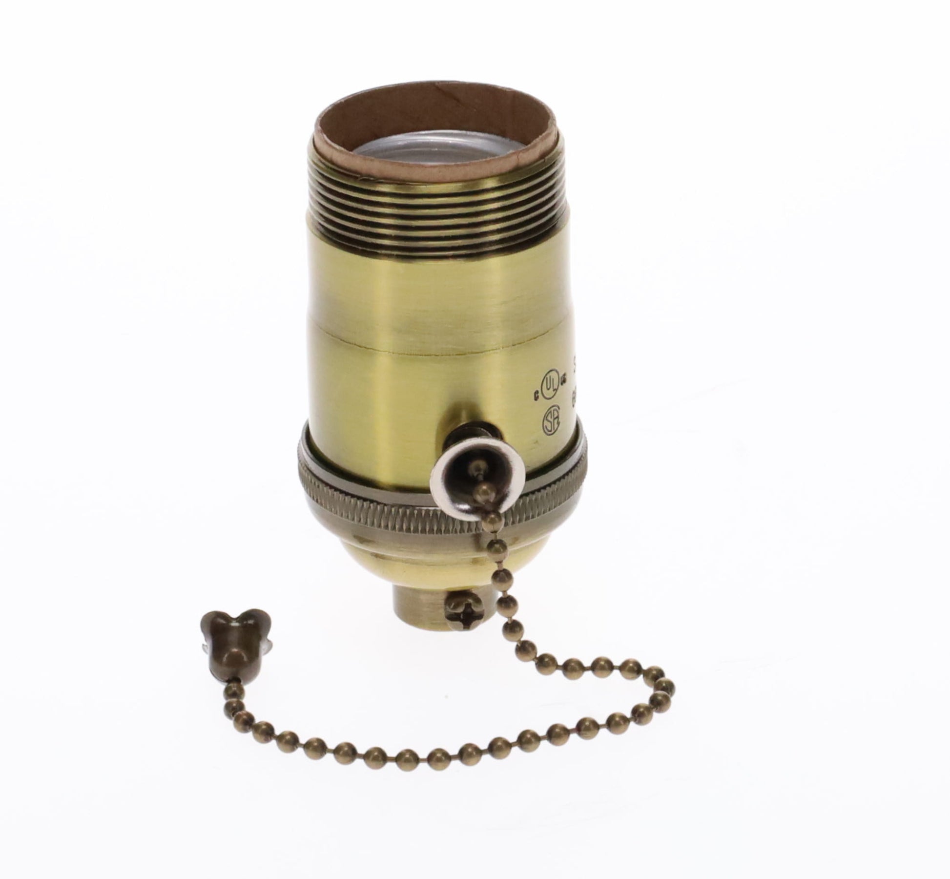 Heavy Turned Brass Socket with Antique BRASS Finish, On/Off Pull Chain function, UNO Thread (48255A)
