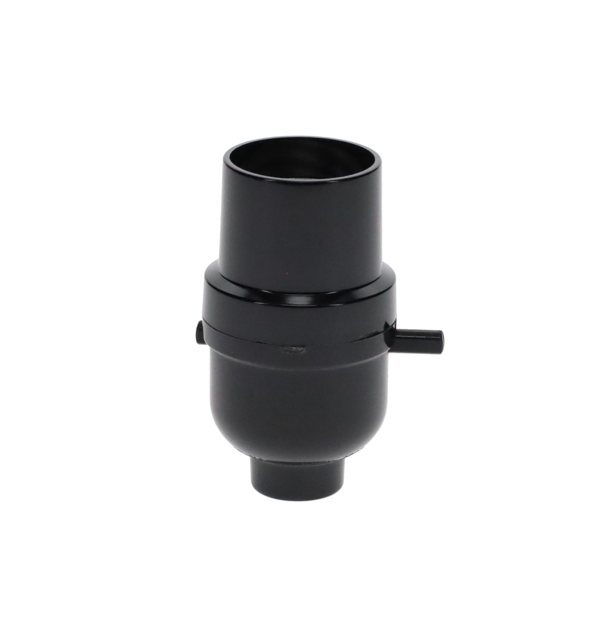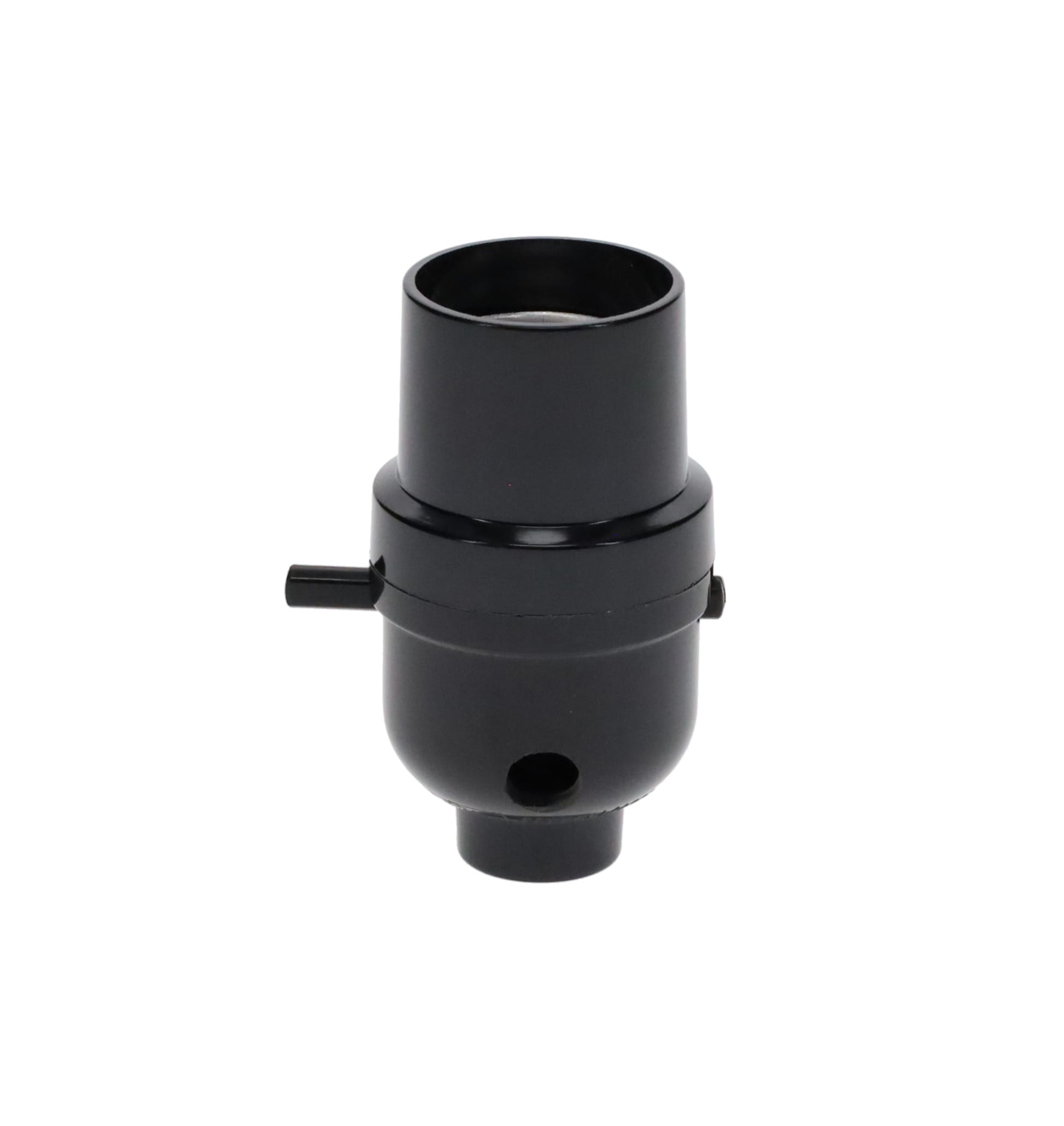 Tall Push Through Phenolic Socket, Med. Base (E-26), 1/8IP cap, No UNO threads, 660W- 250V, 3-piece set, with screw terminals - socket cap has a side outlet wireway. Perfect for solid lamp bodies needing the wire to lay down the side. Examples would include oil lamps, jars, figurines, or wood blocks.