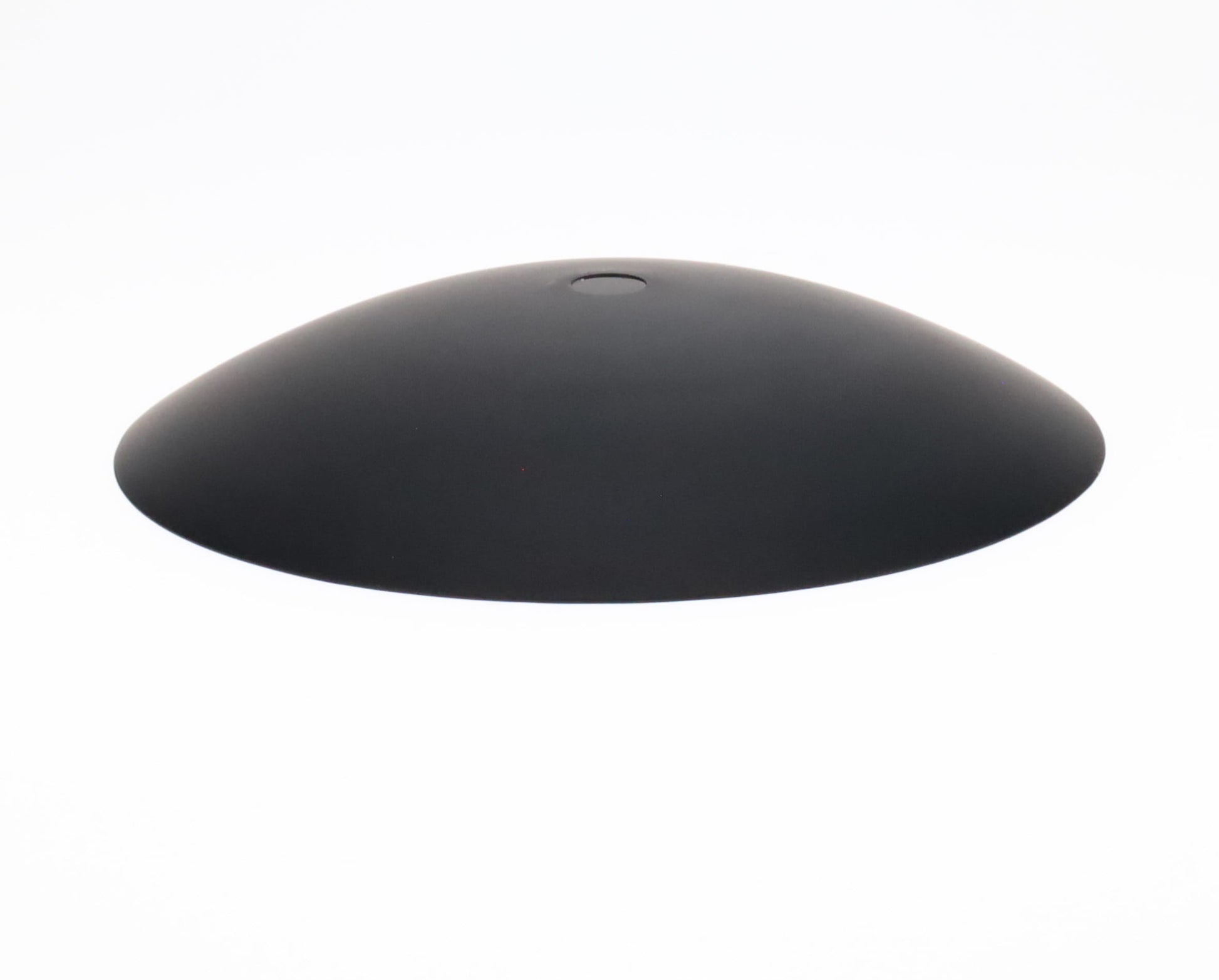 Neckless Ball Shade Cap for neckless ball shades that have 4" openings and 8" to 10" outside diameters. Cap is steel with an satin black finish, for outside the shade, 5-1/4" diameter x 0.84" deep cap with 1/8IP slip center hole