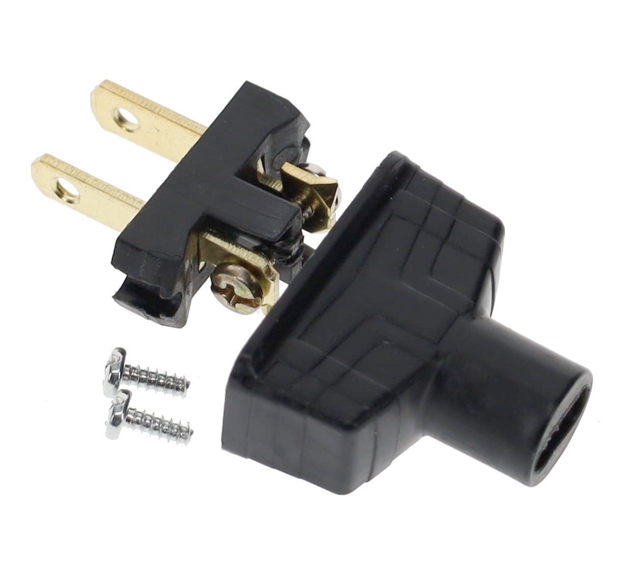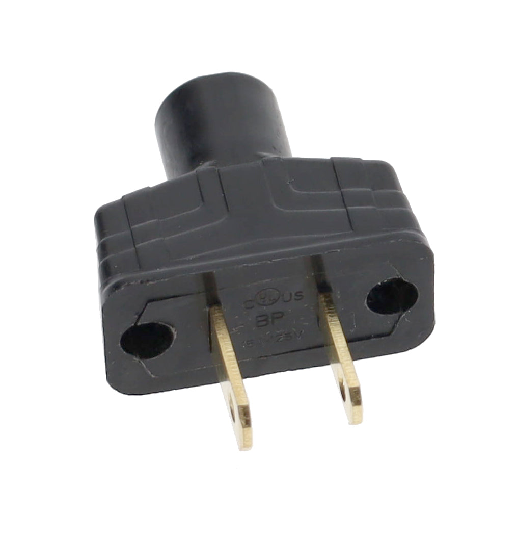 Plug will accommodate rayon covered lamp cord as well as SPT-1 & SPT-2 parallel cord, UL & CSA listed. Will fit cord up to 0.24" thick and 0.465" wide.